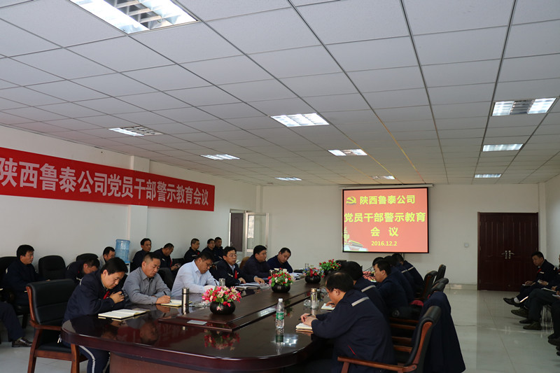 陕西鲁泰公司总经理、党总支书记楚旭峰在讲话中强调,党员干部警示教育会议,既是贯彻党的十八届六中全会精神全面从严治党要求,又是推进反腐倡廉工作的一项重要举措,全体党员干部要结合警示教育片和两篇文章,引以为鉴、警钟长鸣,永葆共产党人清正廉洁的政治本色。