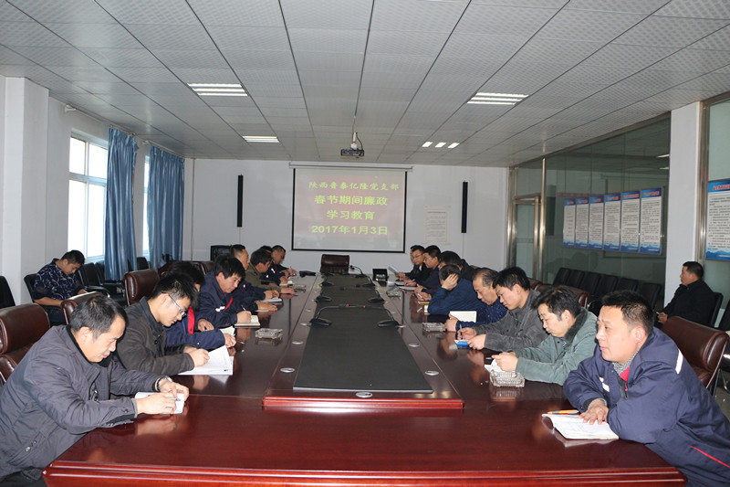 为切实做好"两节"期间党风廉政建设工作,营造欢乐祥和、文明节俭、风清气正的节日氛围,近日,陕西鲁泰公司党总支下发了做好元旦、春节期间党风廉政建设工作通知,对"两节"期间的党风廉政工作做了细致安排并提出明确要求,该公司各党支部认真组织学习贯彻。