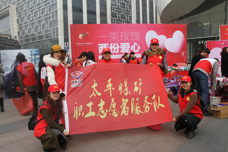 2月14日,太平煤矿组织部分工会职工志愿者和青安岗员赴济宁参加由市运河义工团发起的"情人节鲜花义卖活动"。此次义卖所得款项均用于扶贫帮困和爱老助残。