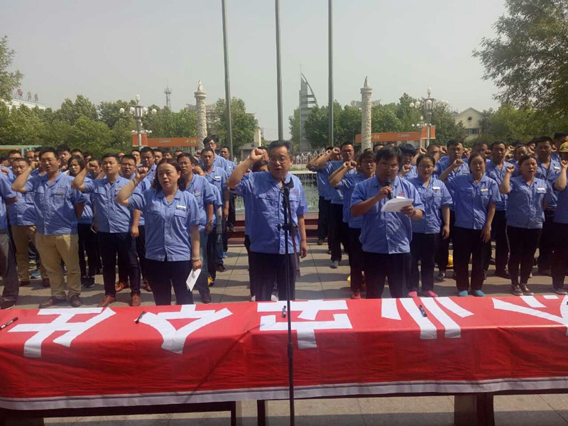6月2日上午9:30,鲁泰化学组织机关部室全体人员、各车间工段长以上管理人员共计120余人,在办公楼前举行"安全生产月"启动仪式暨安全宣誓签名活动。仪式由副总经理吴艳蕊主持,总经理、党总支书记申玉海作动员讲话。