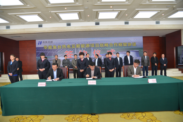 山东鲁泰煤业有限公司总经理李合军,华能济宁运河电厂党委书记吕书臣,鱼台县委副书记、县长宫振华分别代表三方在协议书上签字。