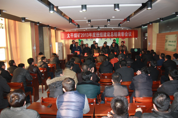 1月13日上午9时,太平煤矿2013年度班组建设总结表彰会议在综合办公楼六楼会议室召开,来自各工区的党支部书记、技术员、班组长共一百余人参加会议。会议由该矿工会办公室主任王钧强主持。该矿党委书记汤保民、安全副矿长时圣国、副总工程师兼安全科科长王占川、政工科科长袁学访在主席台就座。