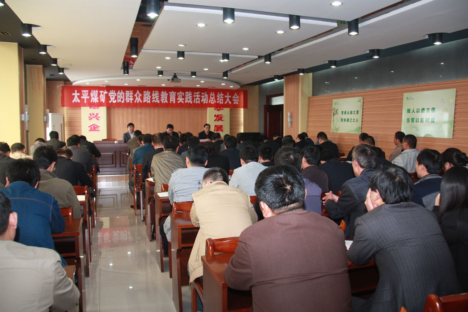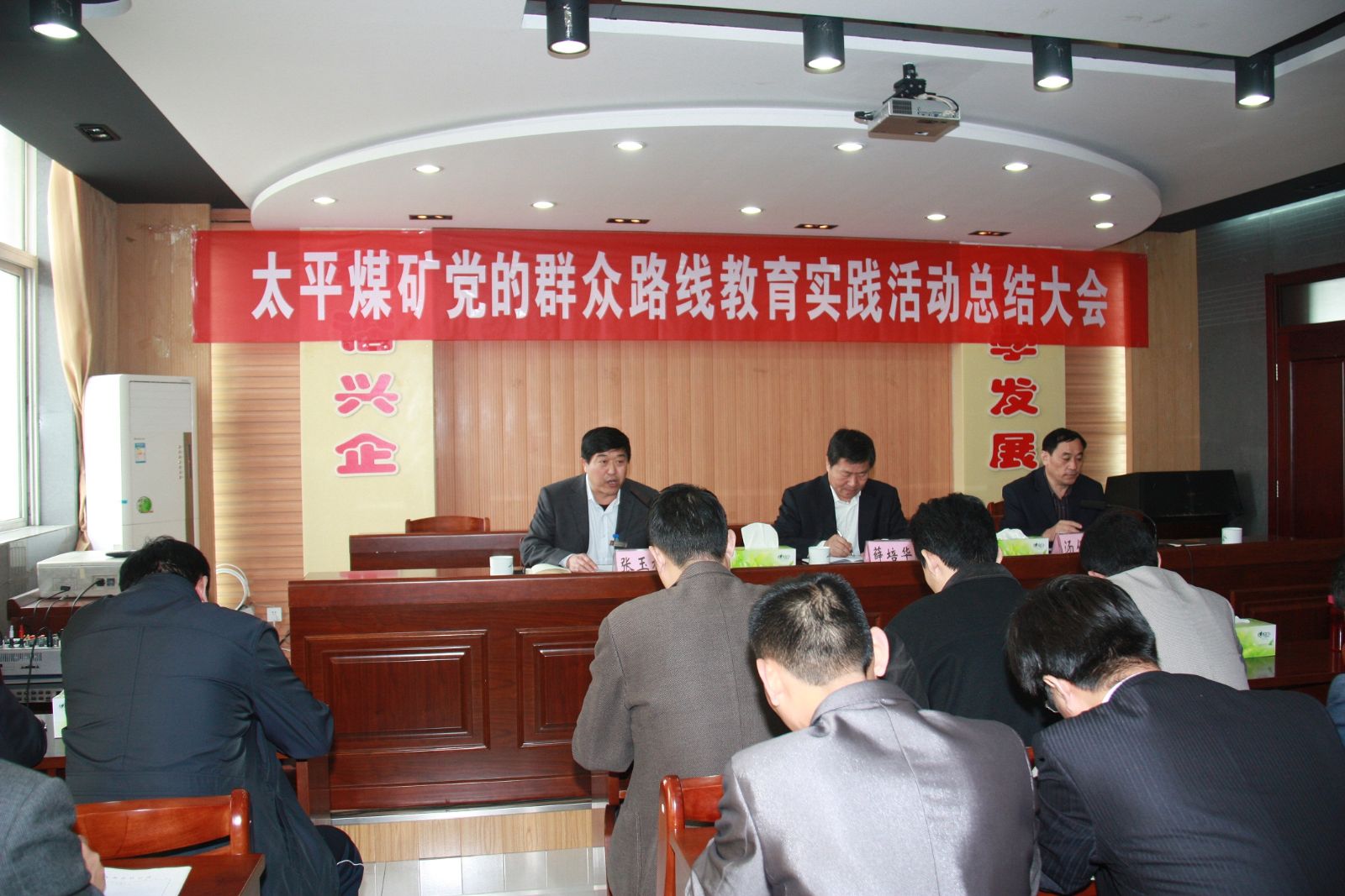 10月31日上午,太平煤矿党的群众路线教育实践活动总结大会在办公楼六楼会议室召开。会议对太平煤矿教育实践活动进行总结,对巩固发展教育实践活动成果,加强党的作风建设,全面推进从严治党进行部署。集团公司第二督导组组长薛培华、副组长张敬民,成员康甲、王洪伟等出席会议。太平煤矿党委书记汤保民作教育实践活动总结讲话,矿长张玉标主持会议。