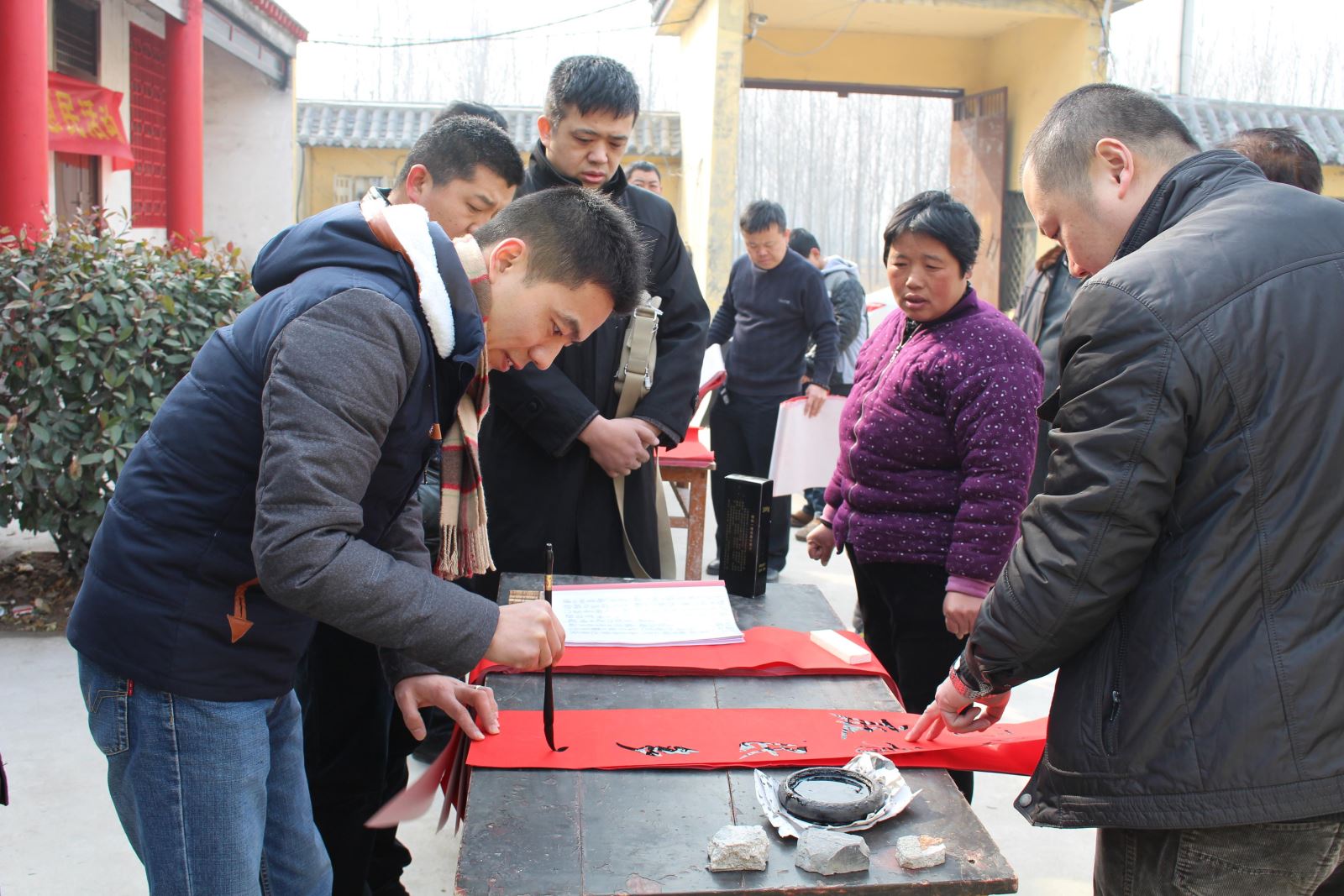 2月14日(正月二十六),太平煤矿团委组织矿青年志愿者联合九三学社济宁市委综合支社、济宁市政协书画联谊会、邹鲁画院的书法家们一起来到邹城市太平镇秦河村为村民义务写春联,送出新春的祝福。