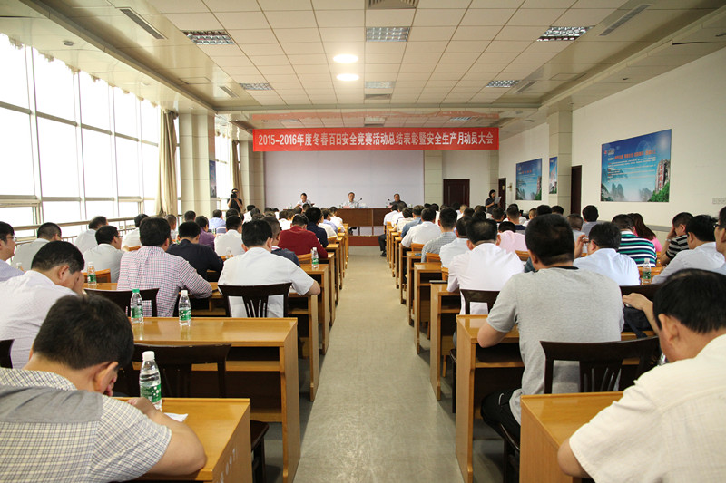 5月31日上午,集团公司在七楼会议室召开2015-2016年度冬春百日安全竞赛总结表彰暨安全生产月动员大会。集团公司总经理李合军出席会议并讲话,副总经理关延忠总结"2015-2016年度冬春百日安全竞赛"活动。副总工程师鲍学彬主持会议。