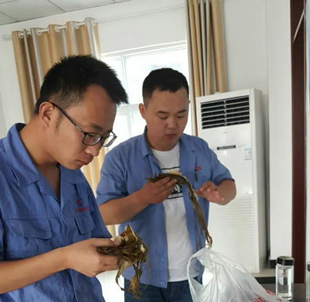 端午节一早,餐厅的师傅们早早的把职工们亲手包制的粽子煮好,并把用艾叶煮好的鸡蛋一块装好,由项目部领导亲手发放到在矿的每一名职工手中,并在职工餐厅共同品尝工友们自己亲手包制的劳动成果。一声声的"好吃!真好吃!",让职工们远在宁夏感受到了"家"的味道。(宁夏鲁泰 郭礼顺 王国双)
