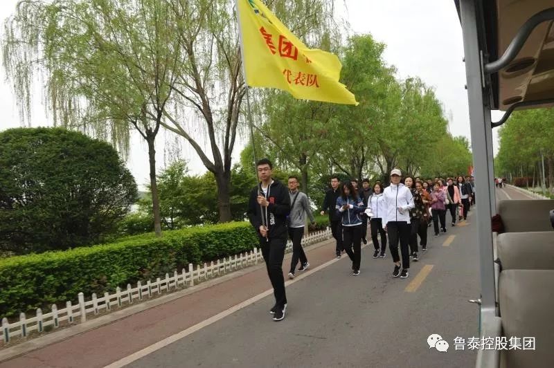 集团旗帜和各单位旗帜在走道上飘扬,旗手们举旗快步前行,大家疾步紧跟,百花争艳的太白湖公园飘荡着集团公司职工洪亮整齐的口号和壮志豪情。紧张的工作之余,职工们难得有这样的运动机会,健步前行时,相熟或不相熟的干部员工互相交流着,欢笑着,众人携手向前,齐心共进。