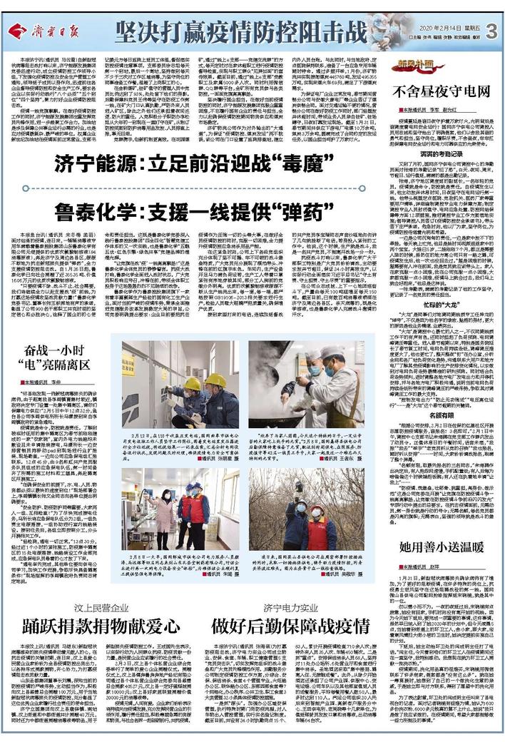 “只要疫情不除、战斗不止、社会需要,我们将继续全力以赴支援战‘疫’前线,为打赢这场疫情攻坚战贡献力量!”鲁泰化学党委书记、董事长张玉标掷地有声的承诺,彰显了公司900名干部职工共克时艰的坚定信心和必胜决心,诠释了国企的初心使命和责任担当。这既是鲁泰化学党委深入践行鲁泰控股集团“四全四化”智慧党建工作体系的又一次实践,也是鲁泰化学“五融五优·红色引擎·绿色共享”党建品牌的熠熠光辉。