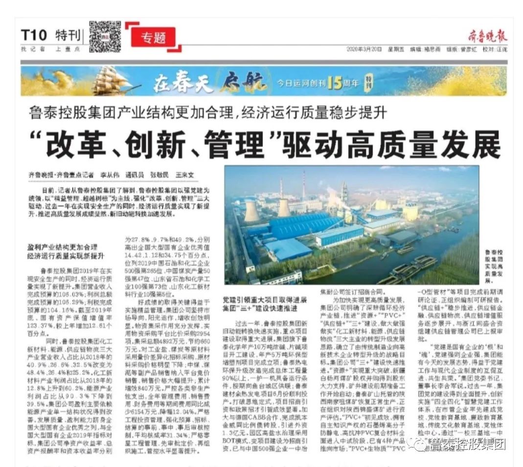 【齐鲁晚报】鲁泰控股集团产业结构更加合理,经济运行质量稳步提升 “改革、创新、管理”驱动高质量发展